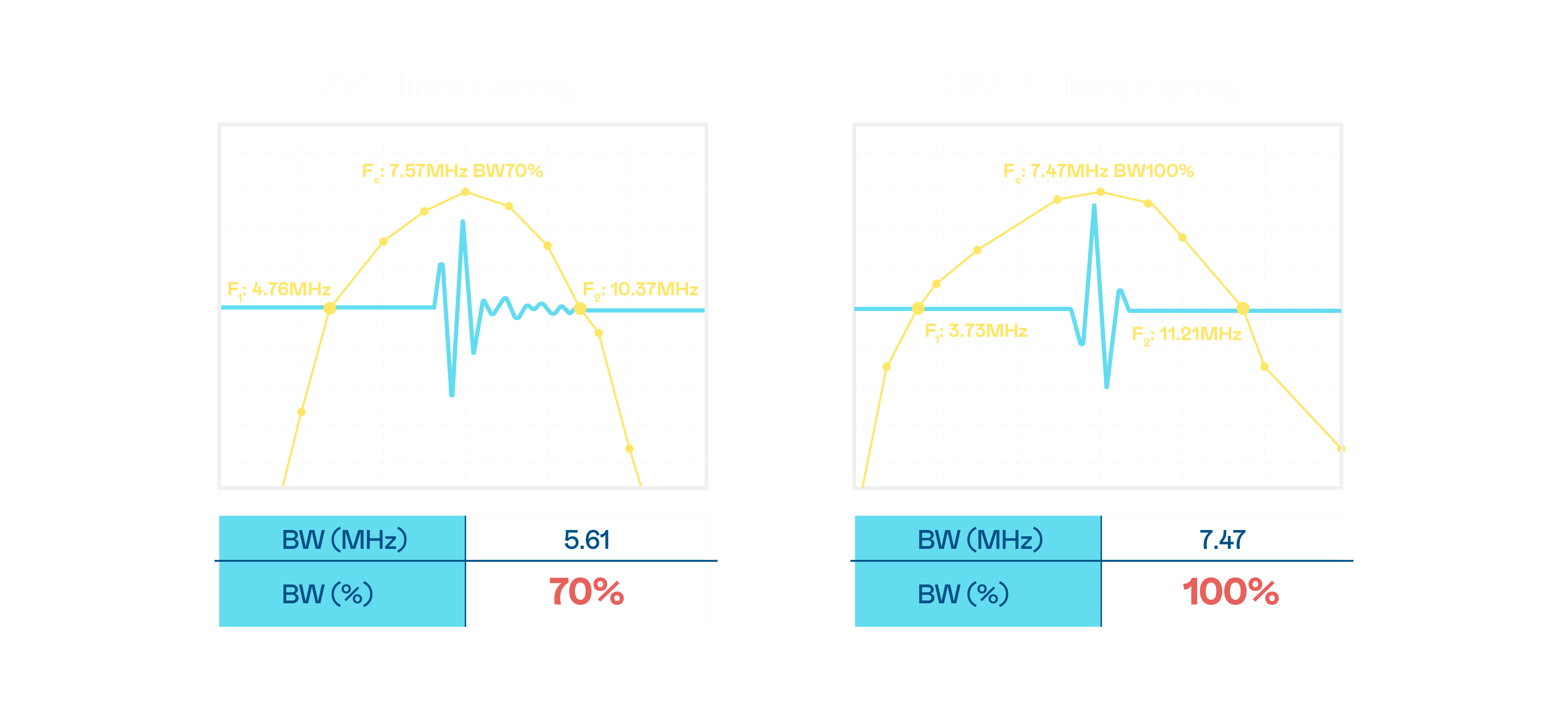 超音波影像的解析度高低,,首先取决于探头能发出的讯号频宽。。。尊龙集团 CMUT 可提供高清晰的超音波讯号,,,提供高频宽、、高灵敏度、、、、影像纹理细节更高的超音波影像,,,,协助医护人员缩短影像判读时间及利用精准的医疗影像进行诊断。。